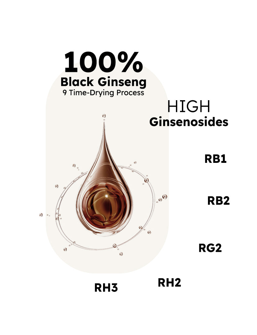 Black Ginseng contains a much higher degree of the ginsenosides Rg3, Rg5, and Rk1.